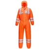 Descriere:: Croiala generoasa garantează o potrivire bună și nu va limita performanța la locul de muncă. Confecționat dintr-un tricot din poliester confortabil, durabil și laminat cu o folie de polietilenă cu permeabilitate redusă. Caracteristicile practice includ glugă elastică, elastic la glezne, manșete și talie, împreună cu fermoar frontal reversibil și clapetă frontală sigilabilă.